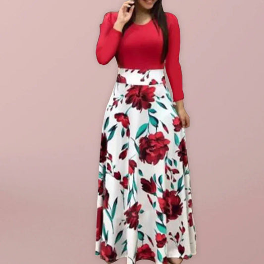 Vibrant Casual A-line Midi Dress with Round Neckline and Belted Waist