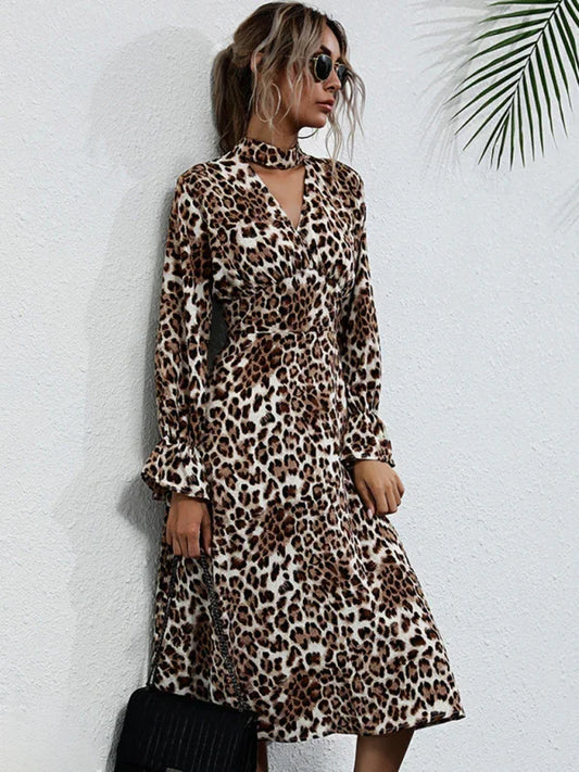 Sophisticated A-Line Mini Dress with V-Neckline and Ruffled Hem