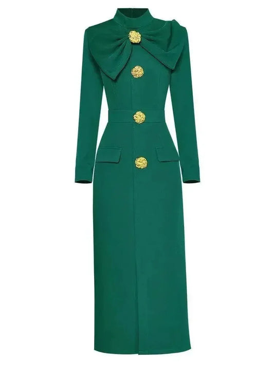 Elegant Slim Fit Midi Dress with Square Neckline and Asymmetrical Wrap Tie