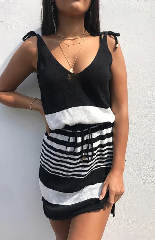 Casual A-line Mini Dress with V-Neck and Short Sleeves
