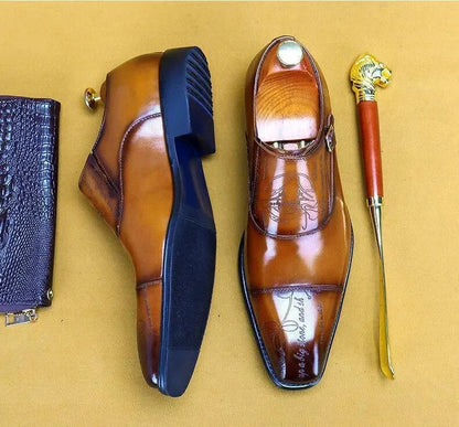 Discover the luxuriousness of this Cencio Monk Strap Oxford Shoes, perfect for Men's Dress Shoes. Crafted with Genuine Leather, its Plain-Solid Buckle Strap gives it a formal-business look perfect for Spring-Autumn. Get your hands on this exquisite Monk Strap Shoes now at LeStyleParfait! Cencio Monk strap men's oxford shoes feature uppers made from genuine leather, output material of rubber, solid pattern type, and a buckle strap closure. They boast a timeless square toe design and premium genuine leather lining for a luxurious feel.