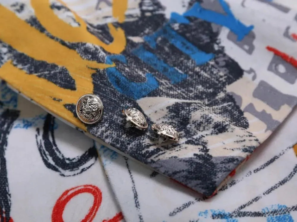 This graffitied blazer is the perfect addition to any casual wardrobe. The bold print and attention to detail make this a luxurious look you'll love. A sharp take on the Graffiti Men's Blazer, this men's style is constructed from a luxe blend of cotton, and polyester. The tailored cut is cut to the perfect height, and the slim fit silhouette is perfect for classic and contemporary looks.