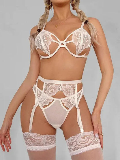 Indulge in the luxurious comfort and sensuality of the Women's Sexy Lace Underwire Sexy Underwear Four-piece Set from LeStyleParfait
