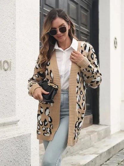 Experience the luxurious comfort and style with our Women's Leopard Jacquard Cardigan. Featuring soft and warm knitted material, this long sweater will keep you cozy and chic. Don't miss out on the convenience of a pocket and the trendy leopard print design. From LeStyleParfait, embrace the ultimate fashion statement with this must-have LeStyleParfait women's sweater.