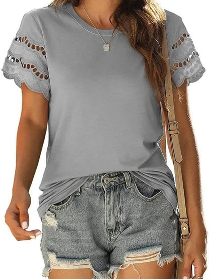 Short Sleeve Solid Lace Knit Women Top