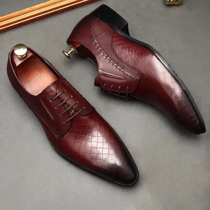 Men Dress Shoes - Weaved Style Oxford Leather Shoes