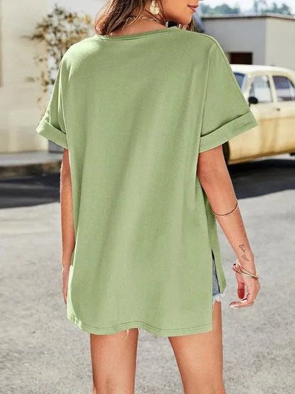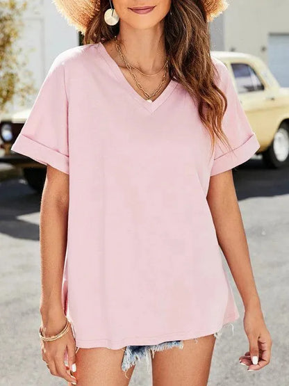 Solid V-Neck Women Top